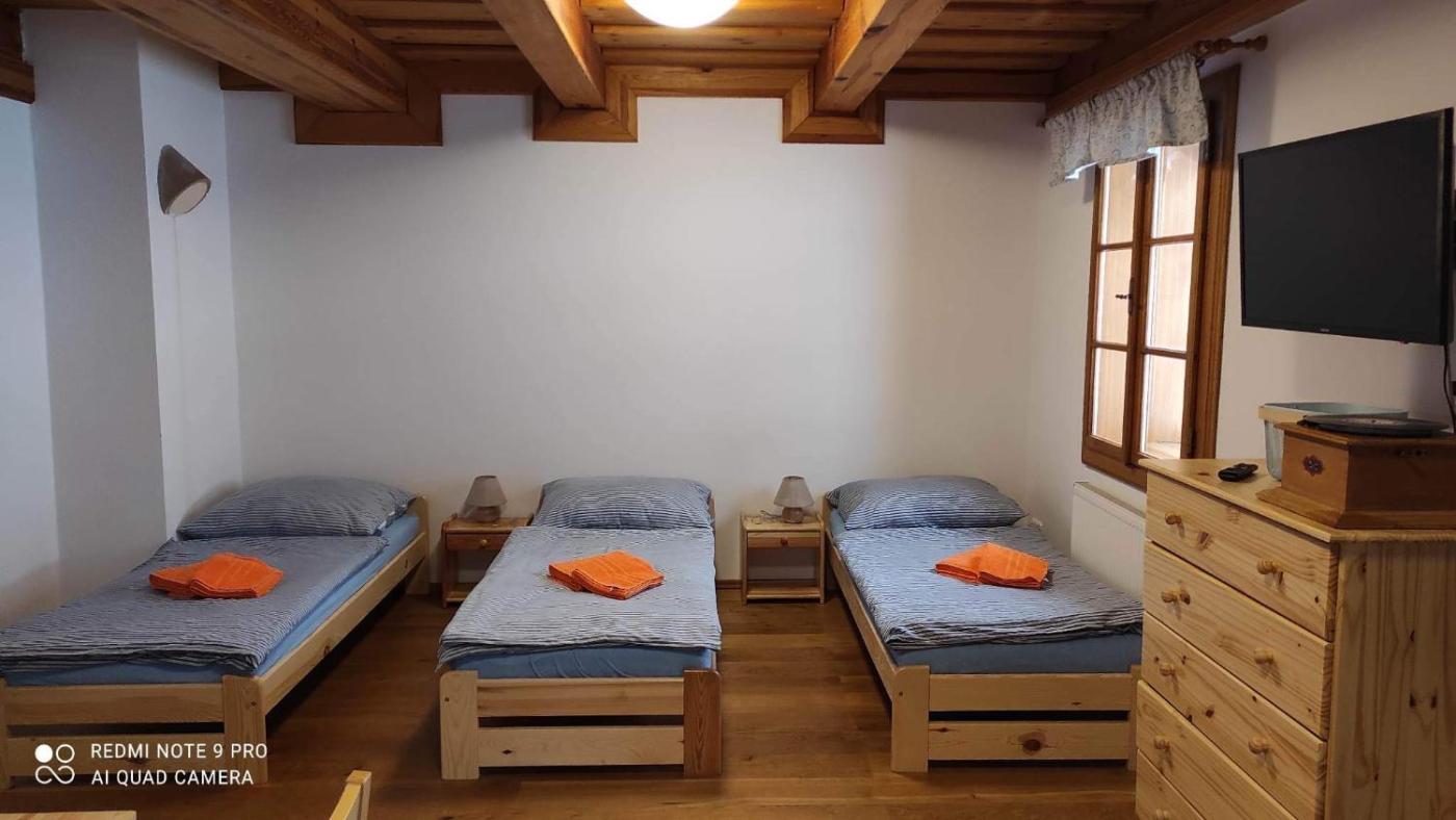 Triple Room. The triple room features a dining area, a wardrobe, as well as a private bathroom boasting a shower and a hairdryer. The triple room offers parquet floors, heating and mountain views. The unit has 2 beds. ;