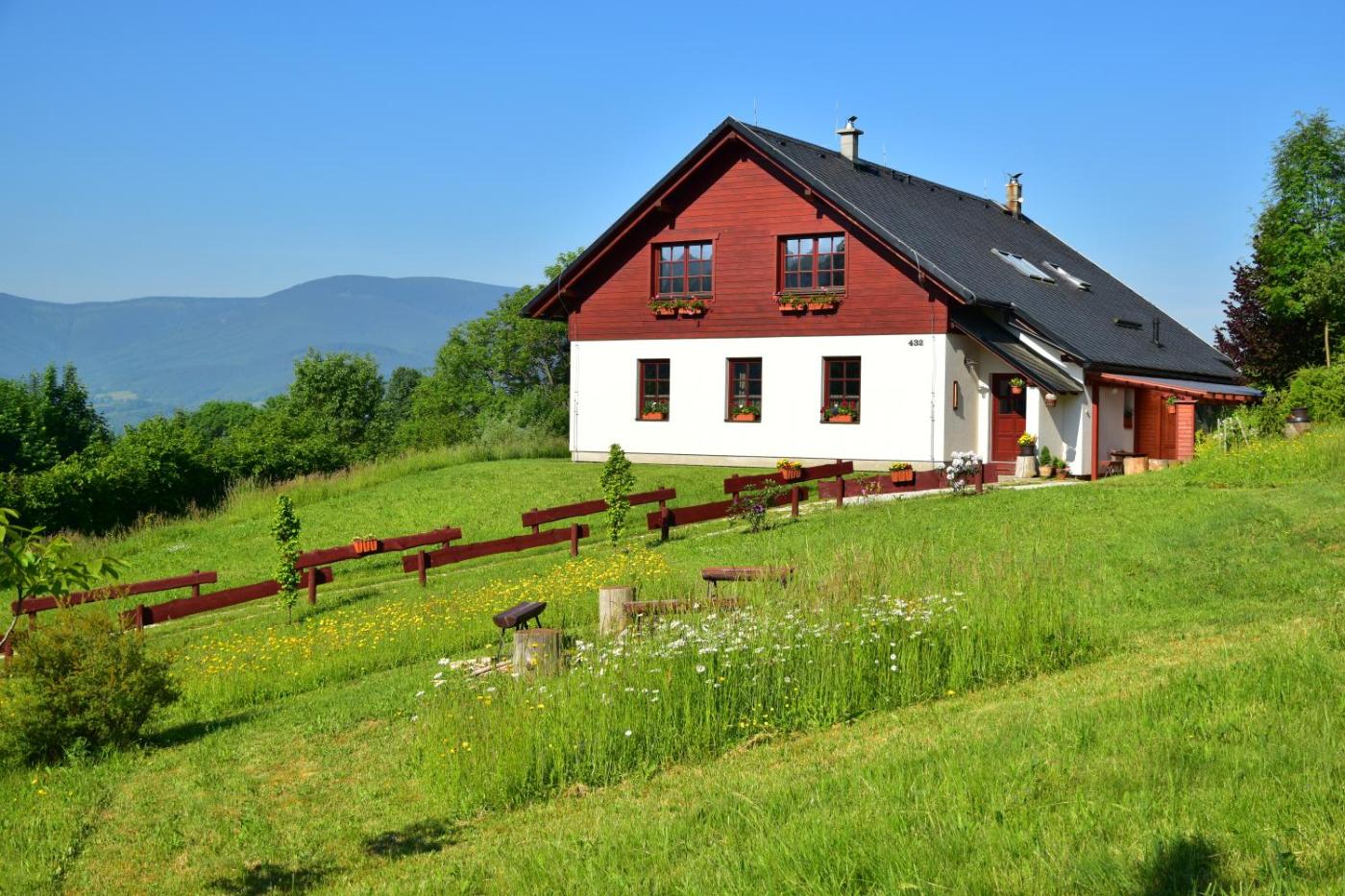 Set in JesenĂk, within 37 km of PradÄ›d and 39 km of Museum of Paper VelkĂ© Losiny, Chalupa Tomiva offers accommodation with a garden as well as free private parking for guests who drive. It is located 44 km from ZĹ‚oty Stok Gold Mine and provides a tour desk. Guests can make use of the picnic area or the barbecue, or enjoy views of the mountain and garden.