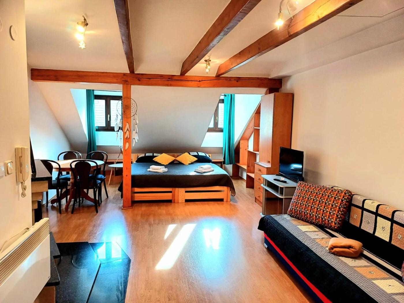 Apartment. This apartment is comprised of 1 living room, 1 separate bedroom and 1 bathroom with a walk-in shower and free toiletries. The well-fitted kitchenette has a refrigerator, kitchenware and a microwave. The apartment features parquet floors, a seating area with a flat-screen TV, a minibar, a tea and coffee maker as well as city views. The unit offers 6 beds.